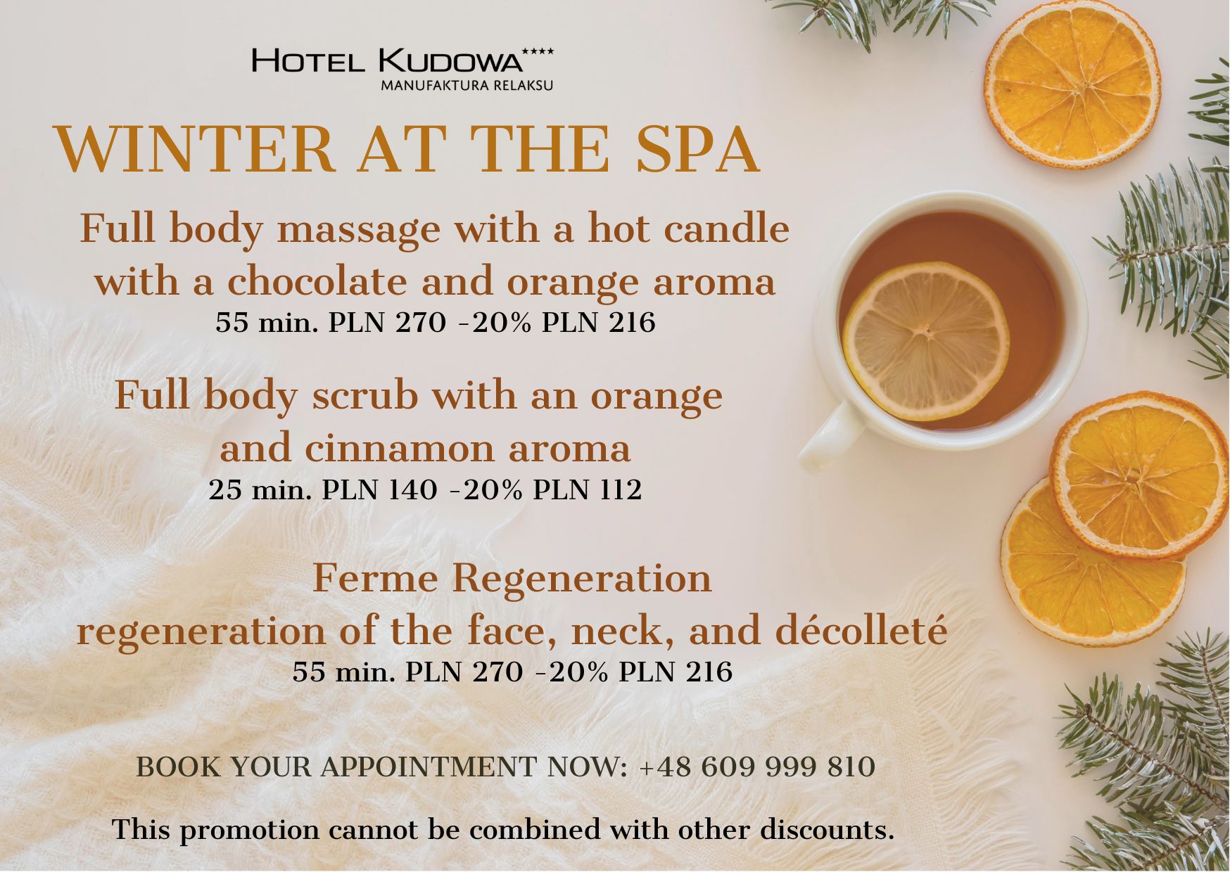 ** To book SPA treatments, please contact us 2 weeks before your stay: email: recepcja@hotelkudowa.pl or phone: 609 999 810