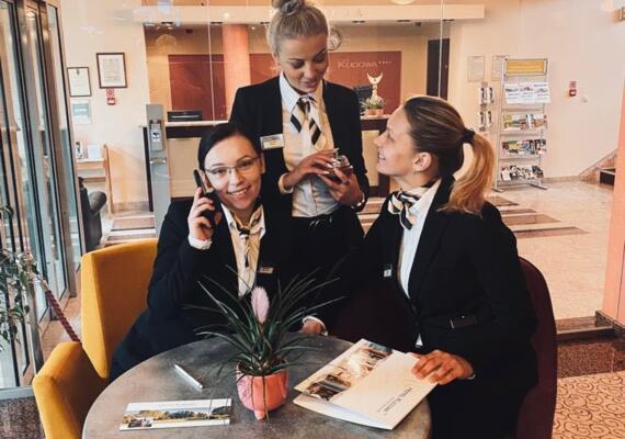 panie na recepcji bardzo miłe i komunikatywne,personel hotelowy bardzo mily i pomocny.
